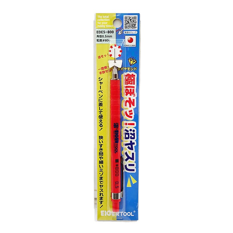 ●模活をさらに沼らせるヤスリ ●モールドのディテールアップ、スジ彫りに最適。 ●シャーペンのようにノックしてヤスリを出し入れできる ●フィギュアやガレージキット、プラスチックやレジンなど各種樹脂から金属、ガラスまで幅広い素材に使用可能 ※芯の上下にダイヤ電着が施されておりますので、経年使用で削れなくなった場合はもう片方をご使用ください。 ●ヤスリ芯材:鋼材 ヤスリ砥粒材:ダイヤモンド ●線径:0.5mm(角型) ●粒度:♯800