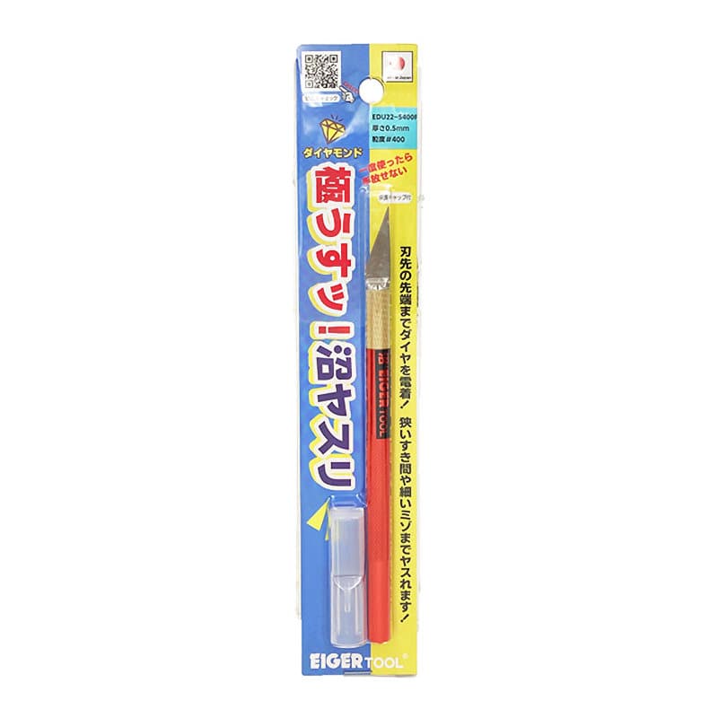 【用途】 精密作業・模型製作などの狭いすき間や溝の研磨 【特徴】 ●刃先角度22度のナイフタイプ ●平面(側面)でもヤスリがけできる ●電着ダイヤヤスリで金属にも使える ●ヤスリ芯材:鋼材 ヤスリ砥粒材:ダイヤモンド ●刃厚:0.5mm ●刃角度22° ●粒度:♯400