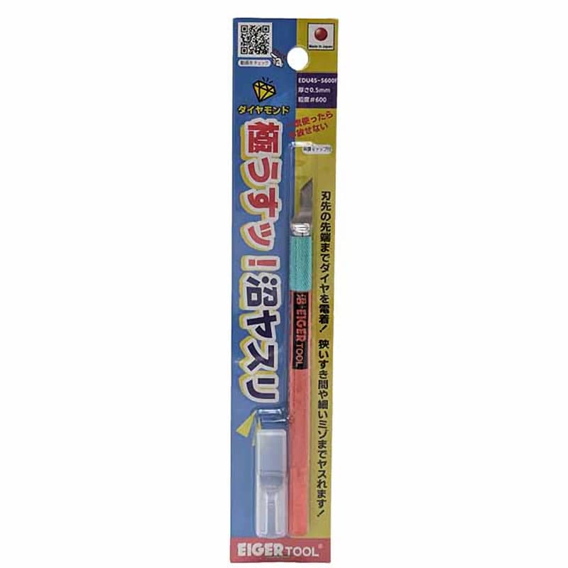 【用途】 精密作業・模型製作などの狭いすき間や溝の研磨 【特徴】 ●刃先角度45度のナイフタイプ ●平面(側面)でもヤスリがけできる ●電着ダイヤヤスリで金属にも使える ●ヤスリ芯材:鋼材 ヤスリ砥粒材:ダイヤモンド ●刃厚:0.5mm ●刃角度45° ●粒度:♯600
