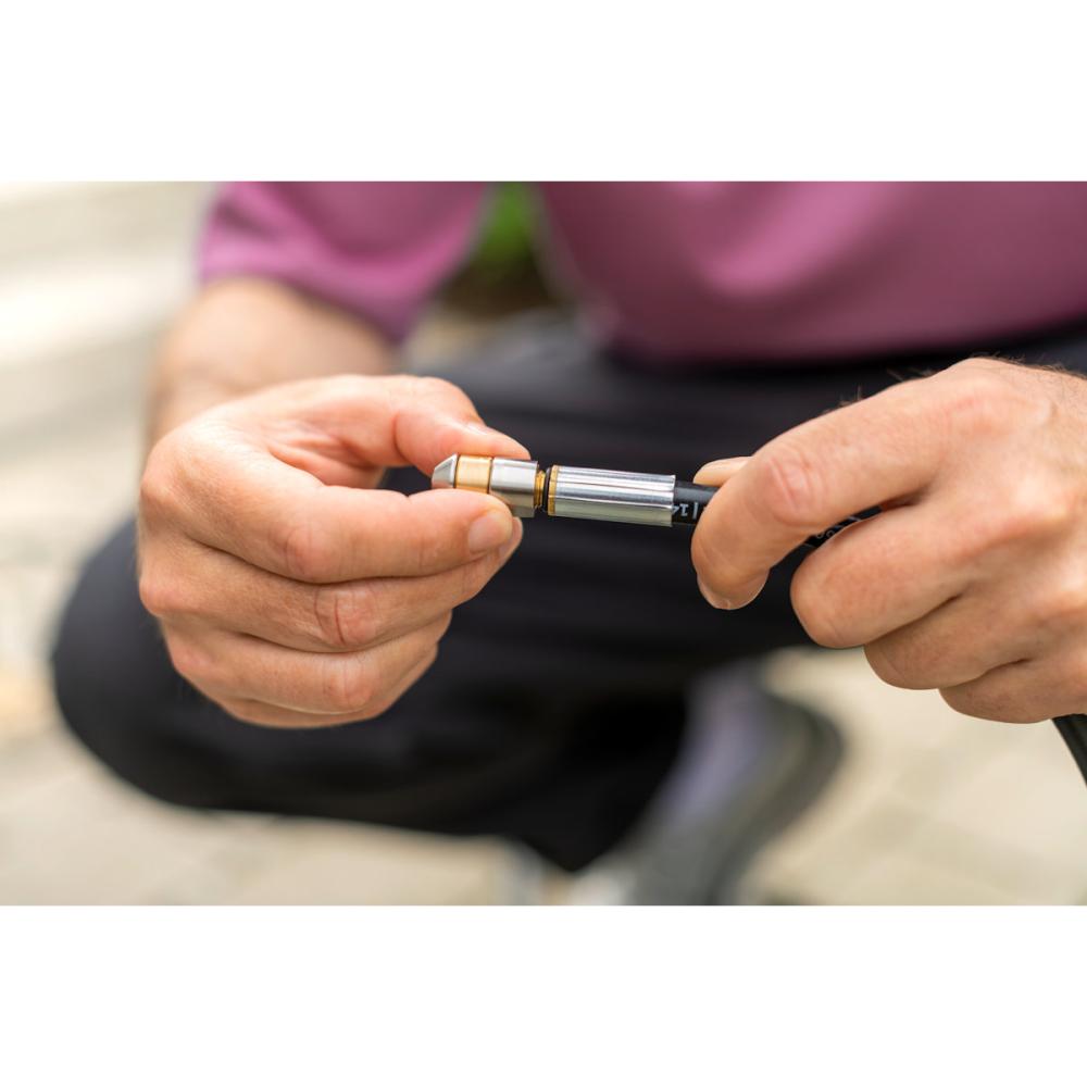 【製品仕様】 ・フレキシブルホース よりやわらか仕様で操作性向上 ・交換可能なノズルシステム 汚れの状況によってノズルを交換(ネジ式) ・ジェットノズル 流線形により進みやすく、引っかかりにくい形状。後方に吐出することでより強力な推進力に換え、つまりの元や汚れを押し出す。 4箇所のノズル穴(小)を 真後ろに水を噴射 ・回転ノズル 水を吐出しながら回転することでパイプ内360°の表面の汚れを洗浄 2箇所のノズル穴(大) 後方側面に水を噴射