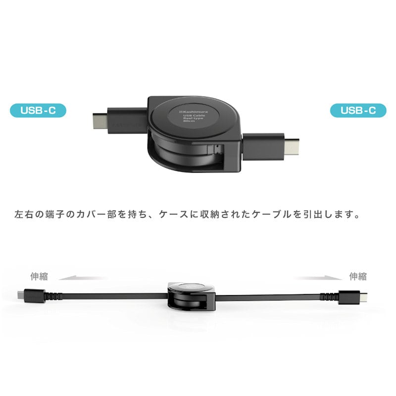 ●コードをスッキリ収納できる巻き取り式USBケーブル。 ●コンパクトに収納できて、持ち運びにも便利。 ●USB Type-Cポート搭載の充電器やパソコンからUSB Type-Cポート搭載のスマートフォン/タブレットを充電可能。 ●USB Type-Cポート搭載のパソコンとUSB Type-Cポート搭載のスマートフォン/タブレット間で、データの相互転送が可能。 ●USB-PD 最大60W(20V3A)高速充電に対応。 ●折り曲げに強く断線しにくい、ロングブッシュ構造。 ※3Aを超えるUSB PDには対応しておりません。