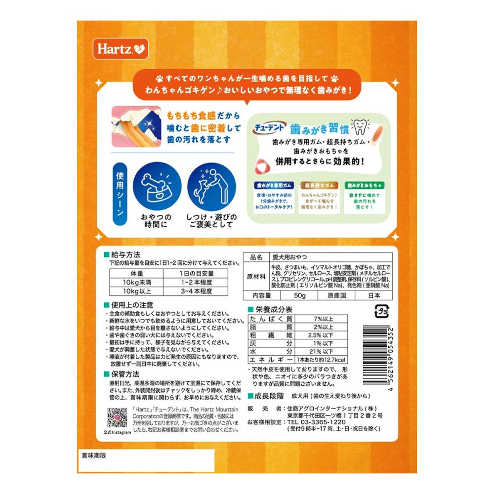 原材料・成分:牛皮、さつまいも、イソマルトオリゴ糖、かぼちゃ、加工でん粉、グリセリン、セルロース、増粘安定剤(メチルセルロース)、プロピレングリコール、pH調整剤、保存料(ソルビン酸)、酸化防止剤(エリソルビン酸Na)、発色剤(亜硝酸Na)