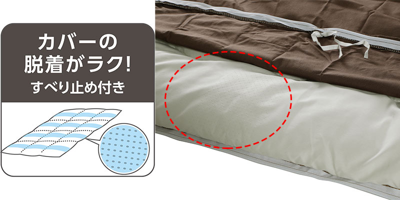 ■側生地(片面)には、カバーの装着がラクになるすべり止め付き。
