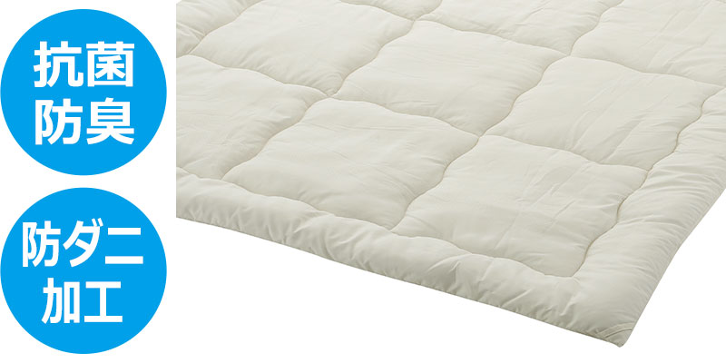 側生地は、抗菌防臭・防ダニ加工で衛生的。