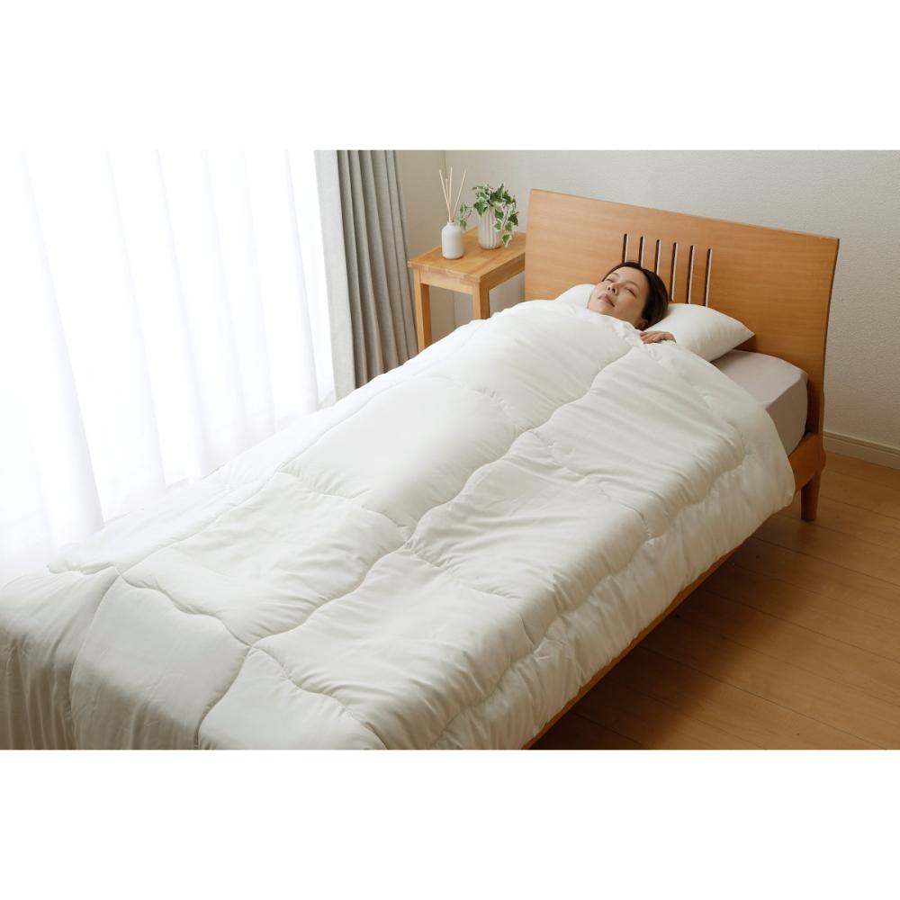 温度の変化に合わせて中わたが温度を調節するので、これ1枚で秋口から春先まで快適な寝心地。寒暖差が気になる季節にもおすすめです。