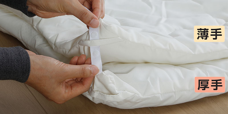 お手持ちのお布団に取り付けることで、更にあたたかくお使いいただけます。
