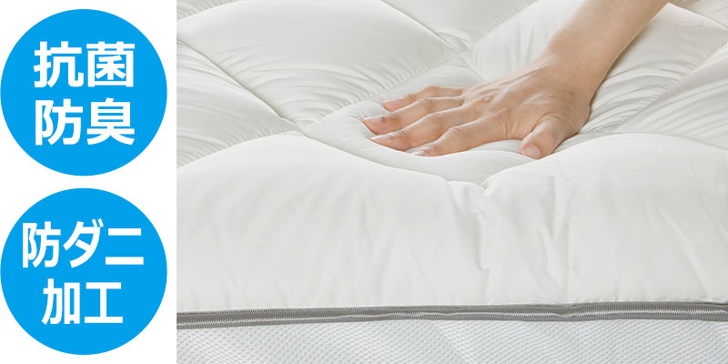 側生地は、抗菌防臭・防ダニ加工で衛生的。