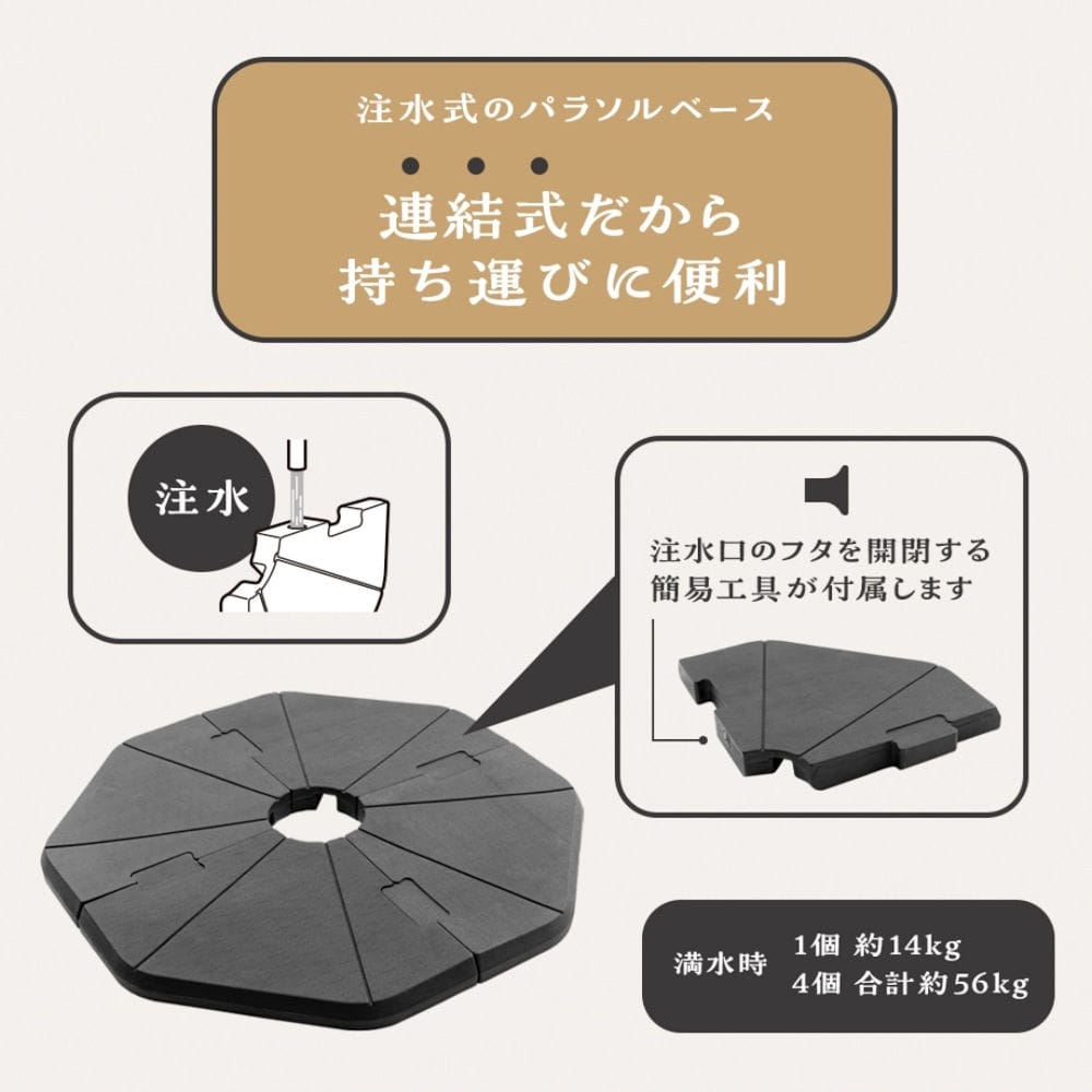 満水時重量:1個約14kg (4個合計:約56kg) ※注水口のフタを開閉する専用工具付