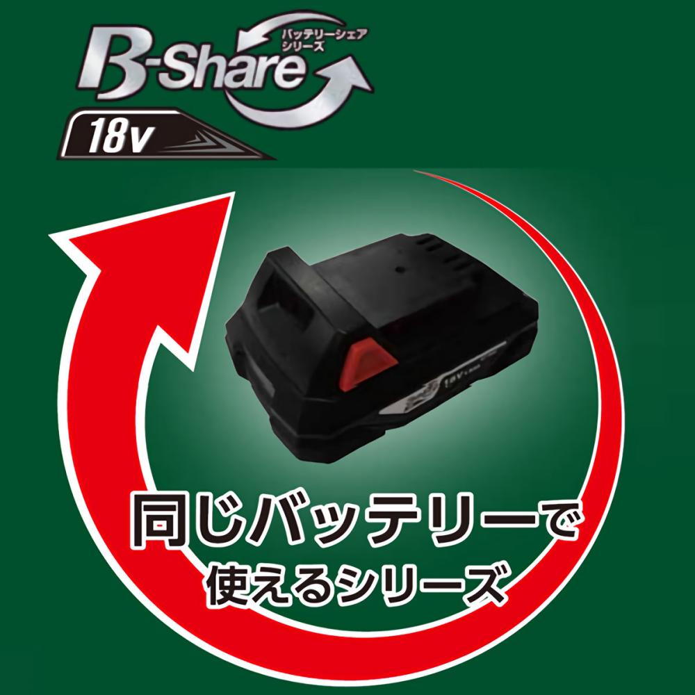 ・B-Share18V充電シリーズでバッテリーを共有できます。