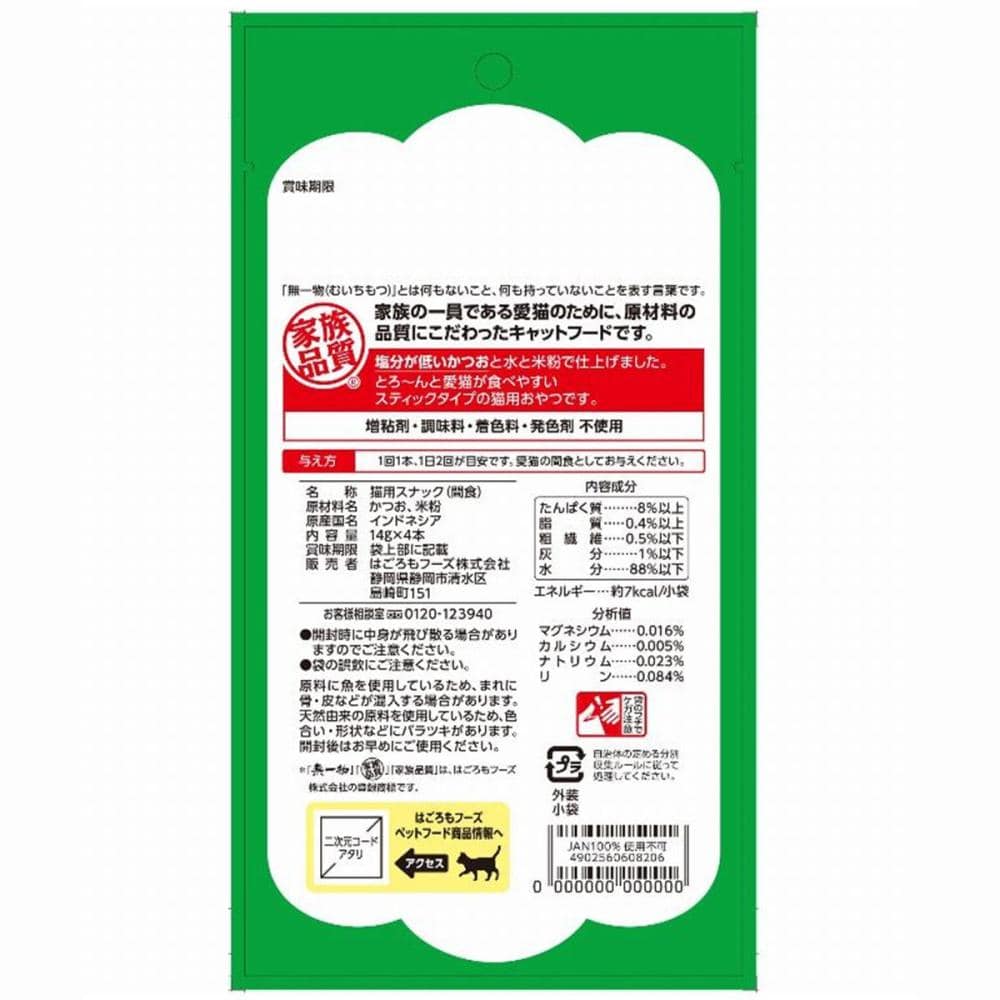 塩分が低いまぐろと水と米粉で仕上げました。とろ~んと食べやすいスティックタイプの猫用おやつです。