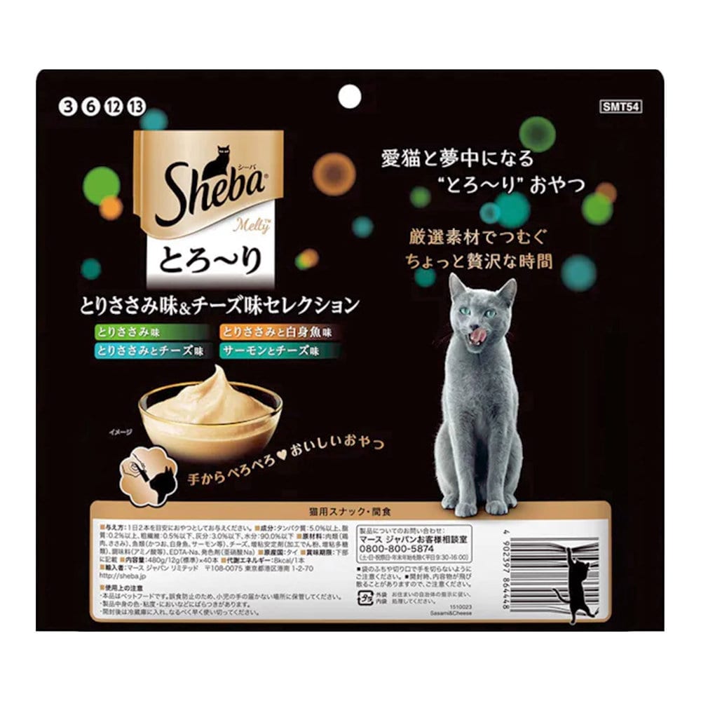 原材料・成分:肉類(鶏肉、ささみ)、魚類(かつお、白身魚、サーモン等)、チーズ、増粘安定剤(加工でん粉、増粘多糖類)、調味料(アミノ酸等)、EDTA-Na、発色剤(亜硝酸Na)