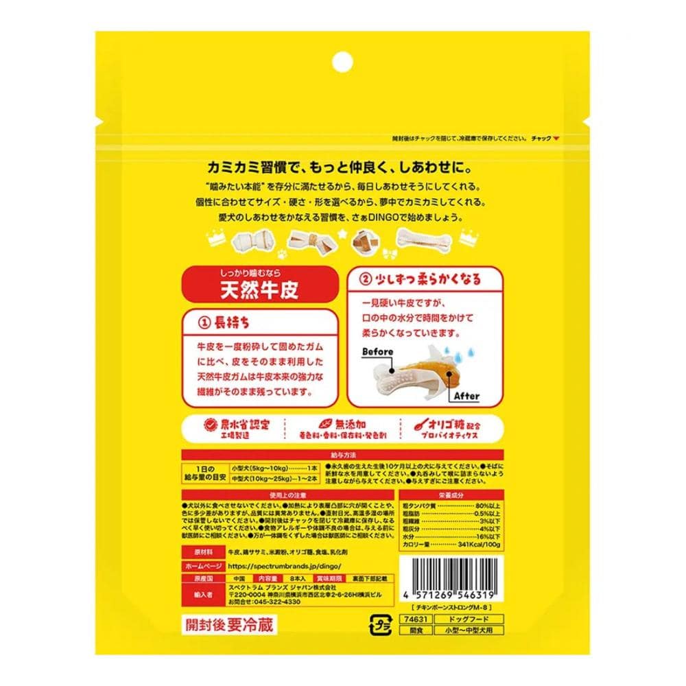 原材料・成分:牛皮、鶏ササミ、米澱粉、オリゴ糖、食塩、乳化剤