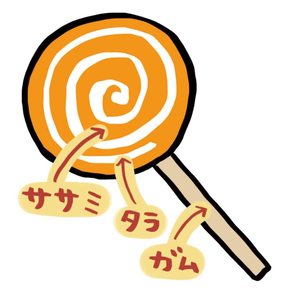 ●低脂肪な鶏ササミと良質たん白質豊富なタラをぐるぐる巻いてかわいいキャンディ形状に仕上げました。