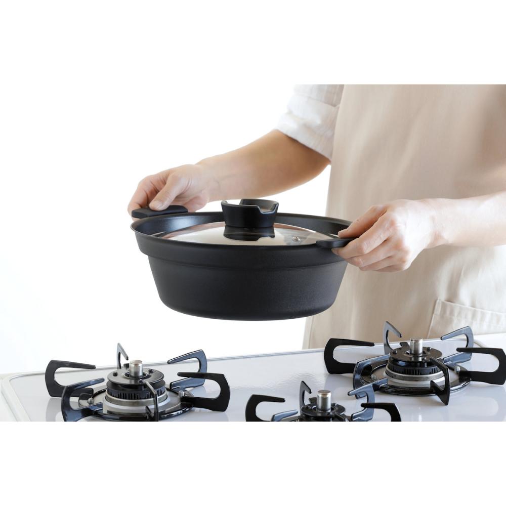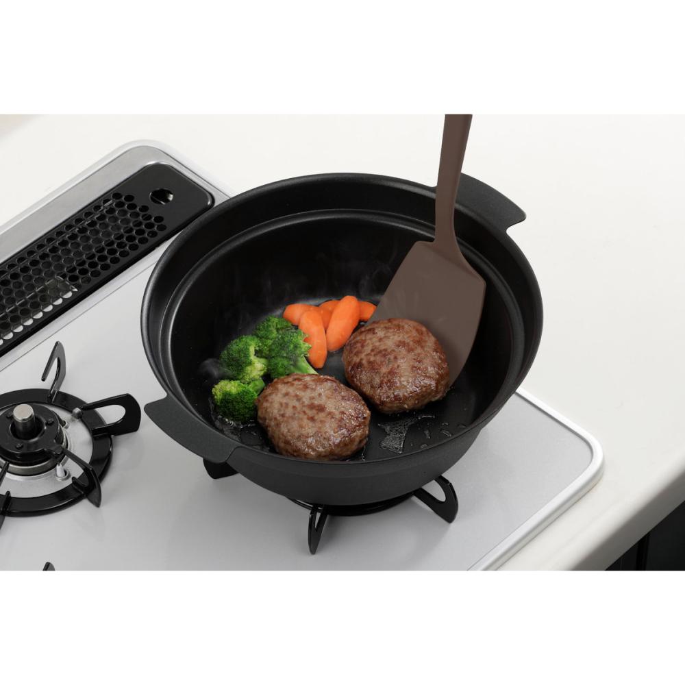 ■内面ふっ素加工でこびり付きにくく焼き物や炒め物調理もしやすい