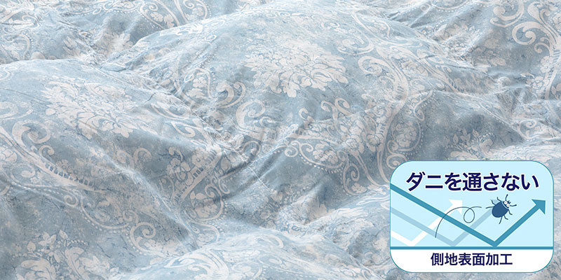 ■帝人フロンティア株式会社が開発した高機能ポリエステル綿「帝人クリスタ―」※を使用。ふんわりとした羽毛のようなタッチ。繊維の中心部が空洞になっているため通気性や弾力性に優れているのが特徴です。