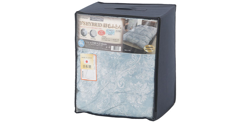 保温性に優れた羽毛と弾力性に優れたポリエステル綿を混ぜた中綿を布団全体に充填しています。それによって快適な使用感の新感覚布団が出来上がりました!