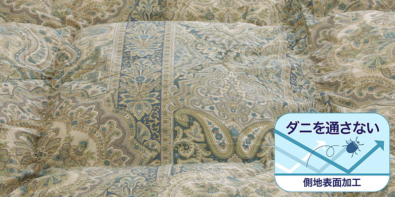 掛布団を横4マス×縦5マスで区切ることで羽毛の偏りを防ぎます。