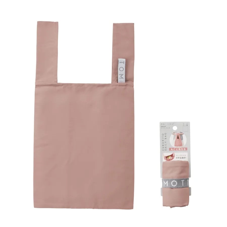 ■くるりと丸めてゴムバンドでとめると、手のひらに収まるほどのコンパクトサイズで持ち運べるエコバッグです。