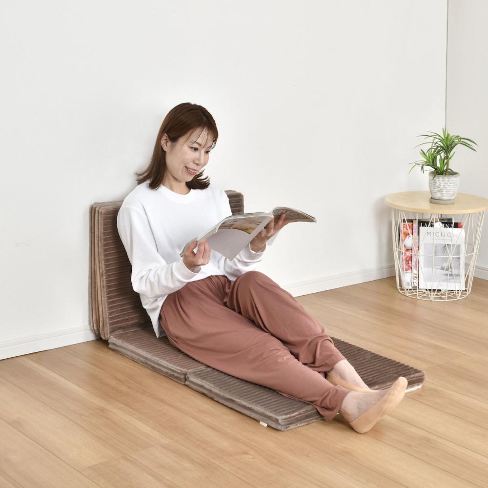 ■広げてごろ寝、4つ折りにすることでスツールとしても使うことができます。