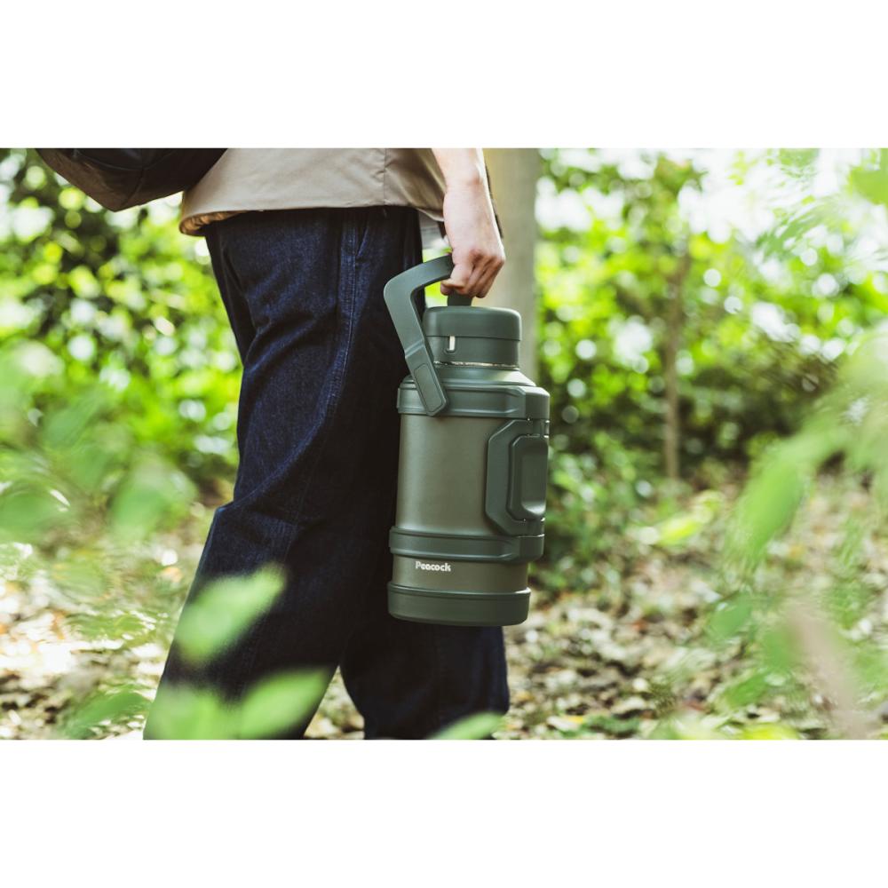 キャンプ・アウトドアシーンをはじめ、お仕事の現場作業に大活躍。 縦横どちらでも持ち運びに便利な手提げハンドル付き 氷を入れやすい幅広口径 シェアして飲めるプラスチック製の内コップ付 実容量:4.0L/ステンレス製真空2重構造/保温効力:6時間81℃以上/保冷効力:6時間7℃以下/口径5.8cm/ 材質 内びん:ステンレス鋼 胴部:ステンレス鋼(ポリエステル樹脂塗装) びん口部:ステンレス鋼 外コップ:ステンレス鋼 内コップ:ポリプロピレン 中せん:ポリプロピレン 肩:ポリプロピレン パッキン:シリコーンゴム