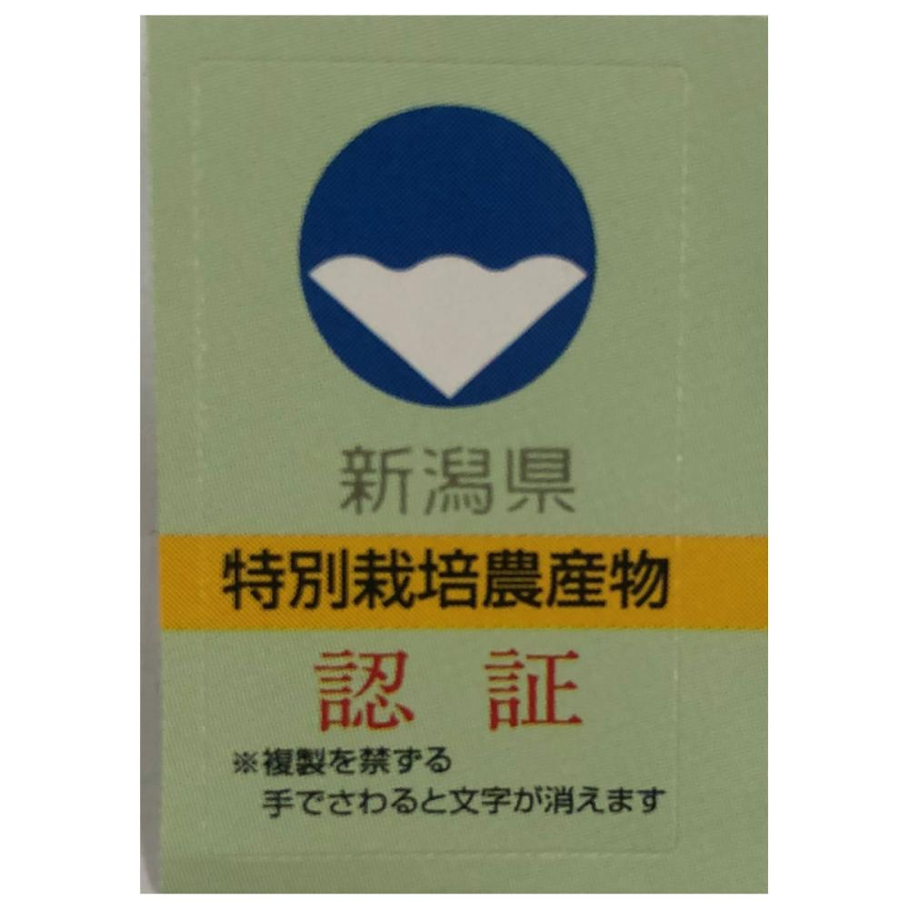 新潟県特別栽培の認定(減農薬、減化学肥料)を受け栽培したコシヒカリです。新潟県特別栽培の認定は県が特別栽培農産物として認証する制度で、農薬の使用回数及び化学肥料の使用量を通常の栽培のおおむね5割以下に削減して栽培されたコシヒカリです。認証マークを紙袋に貼っています。安心安全のご提供はもちろん、新潟平野の肥沃な土壌で育てたおいしいお米をご堪能ください。