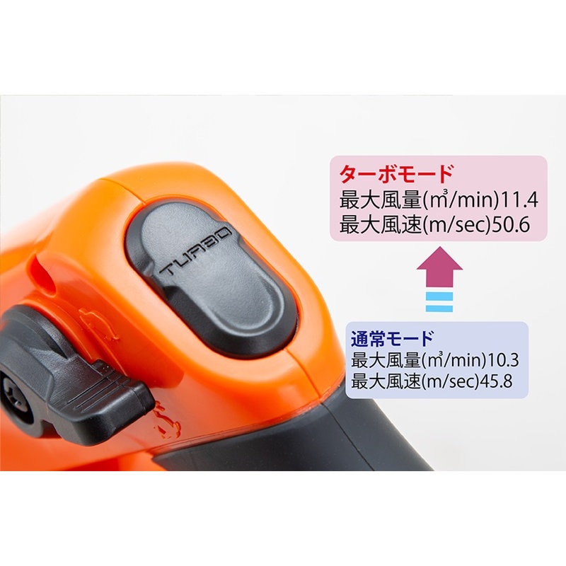 ●連続作動時間:(通常)約11~12分、(ターボモード)約7~8分 ※満充電からの無負荷・全開運転時の作動時間です。使用状況や使用方法によって変動します。 ●バッテリー:36Vリチウムイオンバッテリー LBP-36-80 ●バッテリー質量:0.7kg ●充電器:LC-3604 ●電源:AC100V(50Hz/60Hz) ●充電時間:満充電約100分、80%充電約46分
