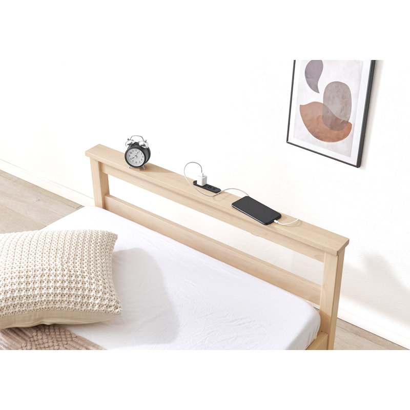 ■ヘッドボートには2口コンセント付き。スマホの充電もできて便利。