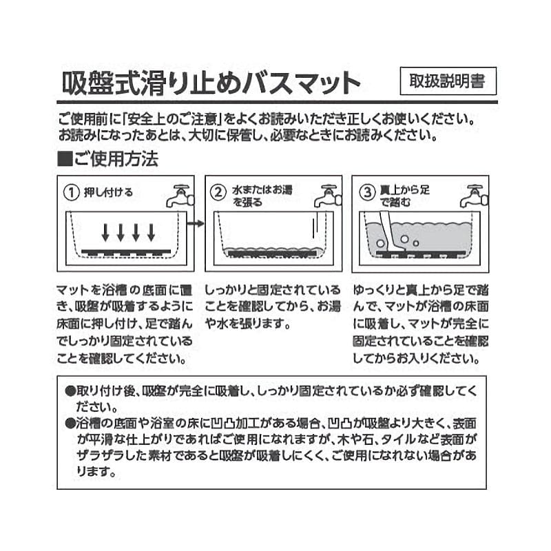 ・給湯により吸盤がはがれることがありますので、入浴前にマットの吸盤が吸着していることを確かめてください。