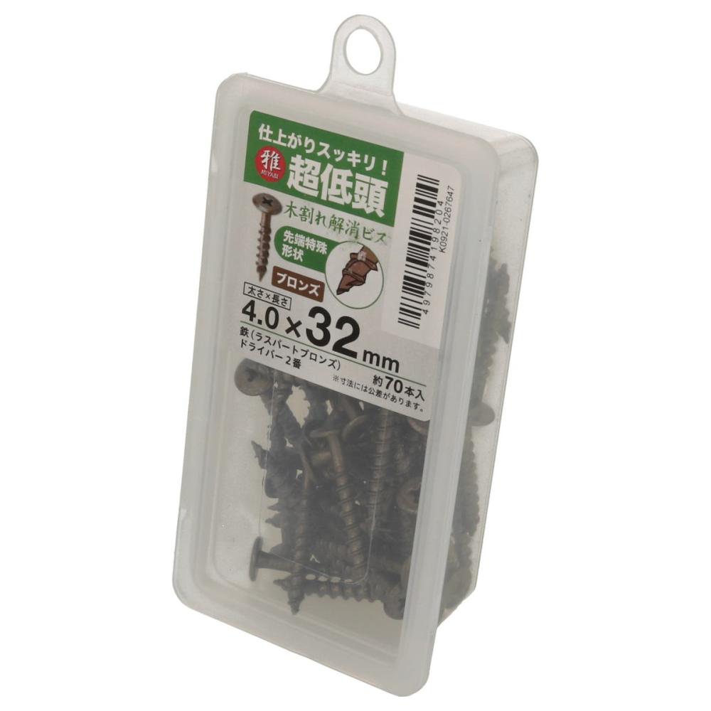 ●寸法:4.0mm ●適合ドライバー:2番 ●表面処理:ラスパートブロンズ ●刃先:特殊形状 ●頭径:9mm ●頭高さ:1.2mm