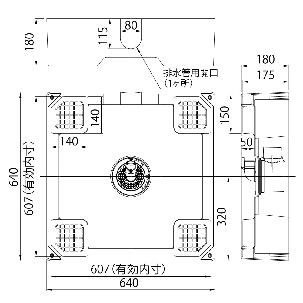 洗濯パン中央に排水トラップを設けることで、排水配管の取り付け位置による取り出し方向を気にすることなく設置が可能です。