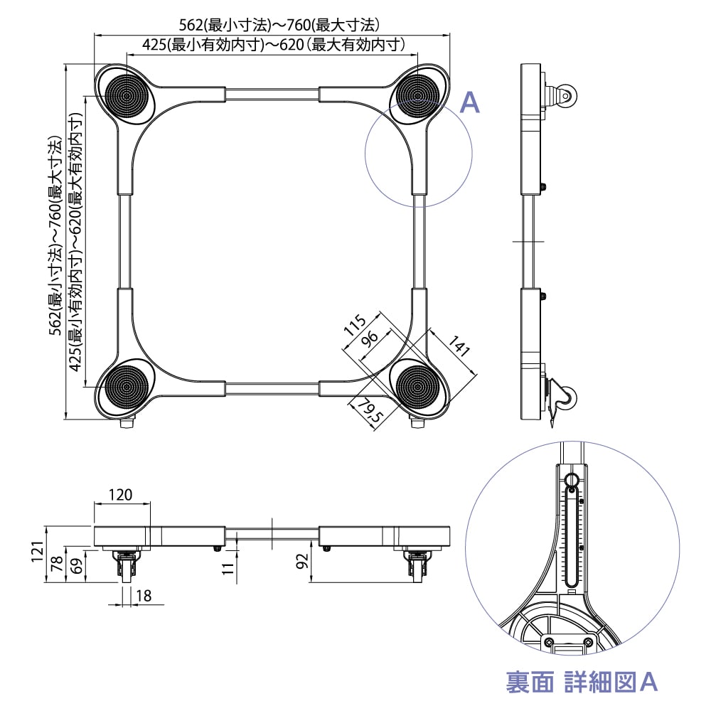 ●寸法 W562~760×D562~760×H121