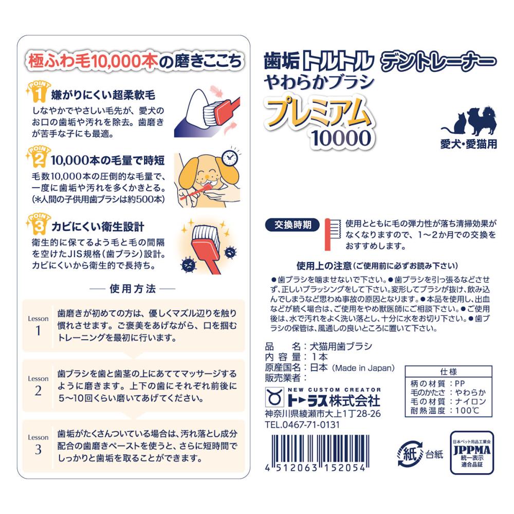 ●10,000本の毛量で時短!毛数10,000本の圧倒的な毛量で、一度に歯垢や汚れを多くかきとる。(人間の子供用歯ブラシは約500本)