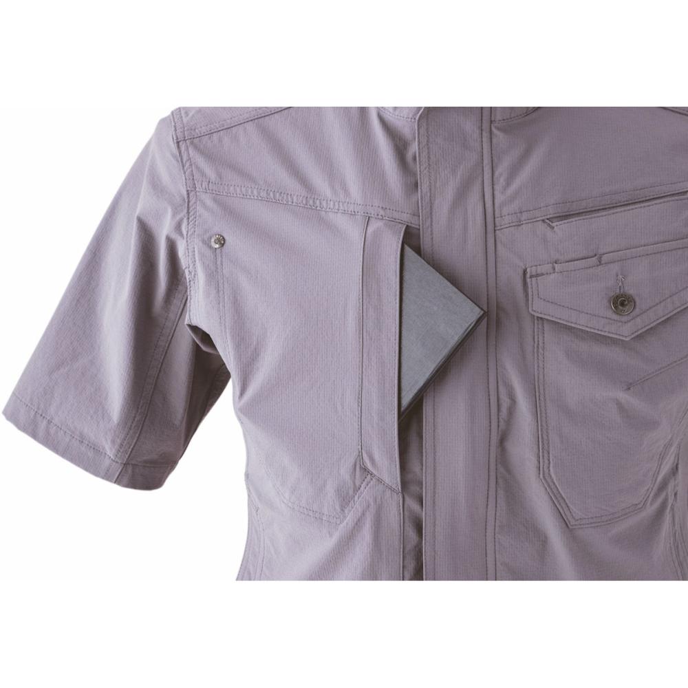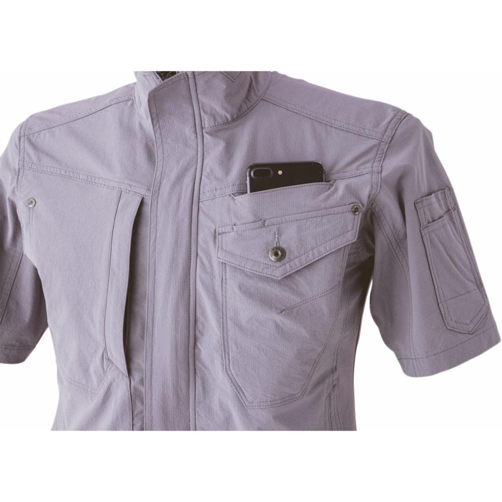 ●2WAY120%ストレッチで動きやすく、スマホ収納ポケット、ベタつき防止背裏メッシュなど頼もしい機能性が光る。
