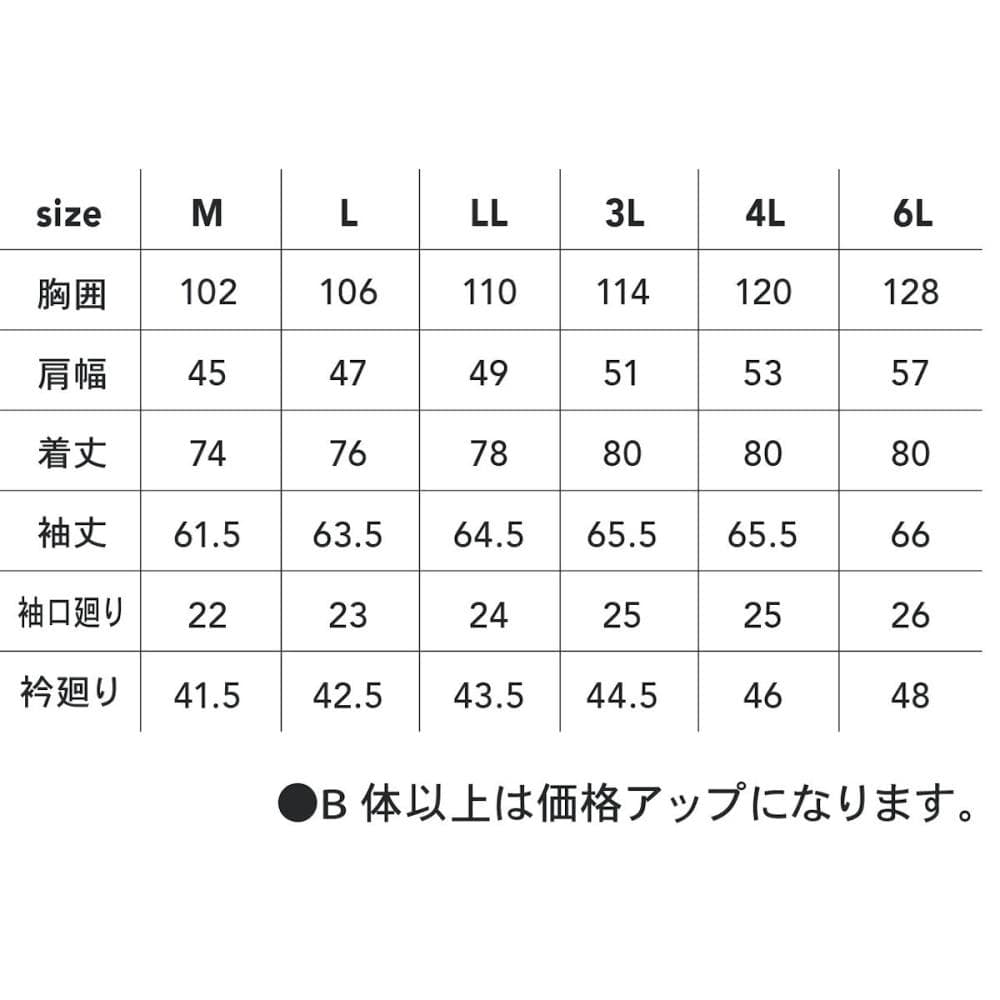 単品サイズ:3L:胸囲114cm肩幅51cm着丈80cm袖丈65.5cm