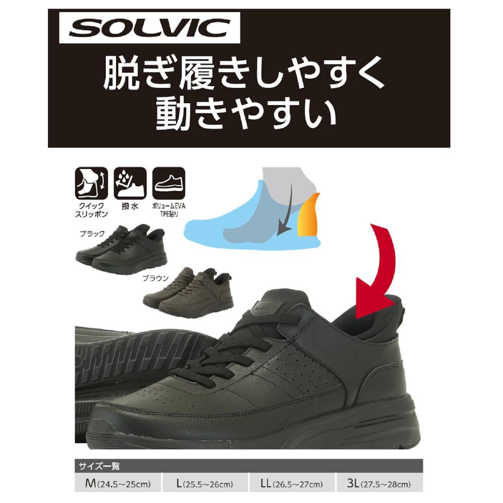 SOLVIC(ソルビック) クイックスリッポン撥水PUレザーシューズ ブラック M