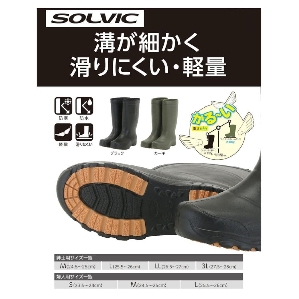 ●防寒 ●軽量 ●滑りにくい ●完全防水 *面ファスナー部は除く(開口部) ●L(25.5~26.0cm) ●材質:甲皮・合成樹脂(EVA) 底材・合成底