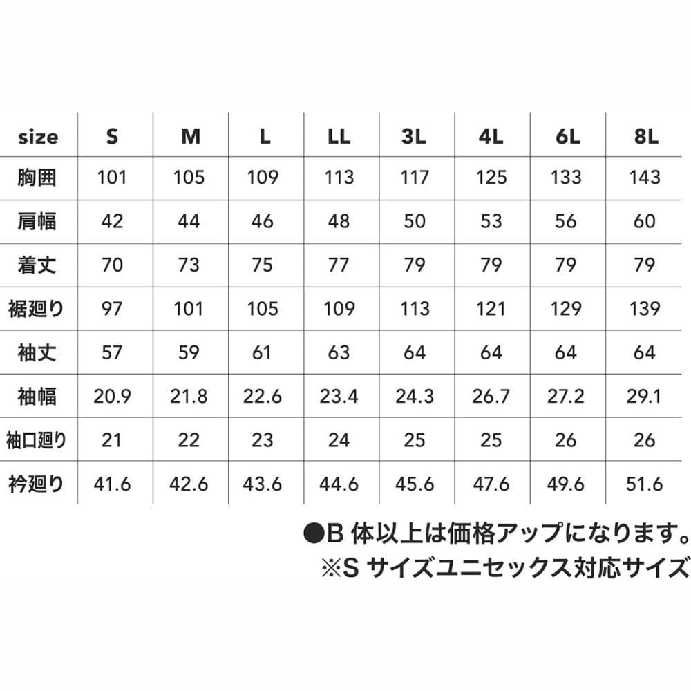 単品サイズ:S(胸囲101cm肩幅42cm着丈70cm袖丈57cm)