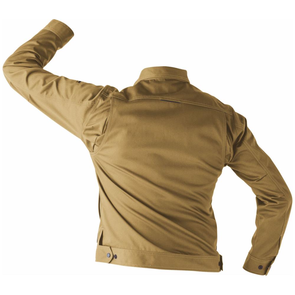 ●ストレッチ生地をベースに、ジャケット背面にはノーフォークを、肘膝にはタックやダーツを備えることで動きやすさを向上させています。