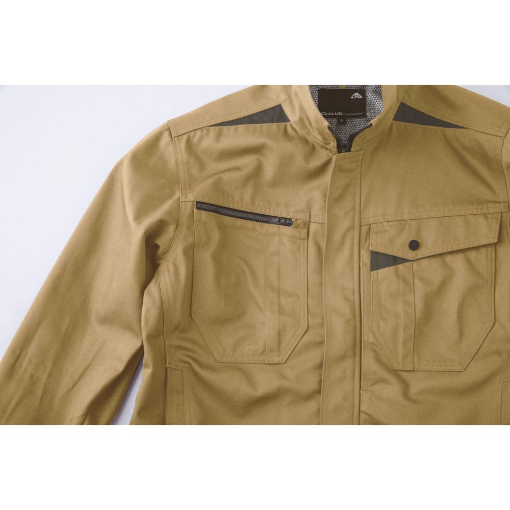 ●収納力についても定番のポケットの他に、ジャケットでは左胸スラッシュポケット、パンツでは右脇にファスナーポケットを備えています。またジャケット、パンツ共に背面に反射パイピングを施し暗所での安全性も確保しています。