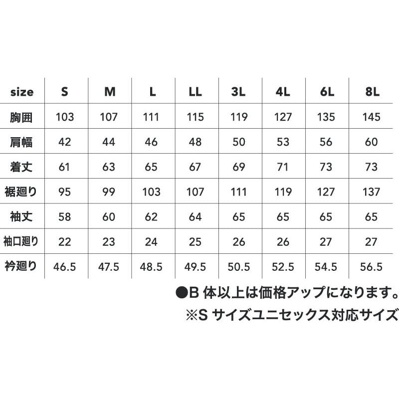 単品サイズ:4L(胸囲127cm肩幅53cm着丈71cm袖丈65cm)