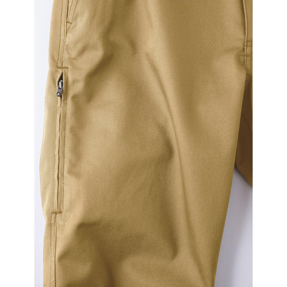 ●収納力についても定番のポケットの他に、ジャケットでは左胸スラッシュポケット、パンツでは右脇にファスナーポケットを備えています。また、ジャケット・パンツ共に背面に反射パイピングを施し暗所での安全性も確保しています。