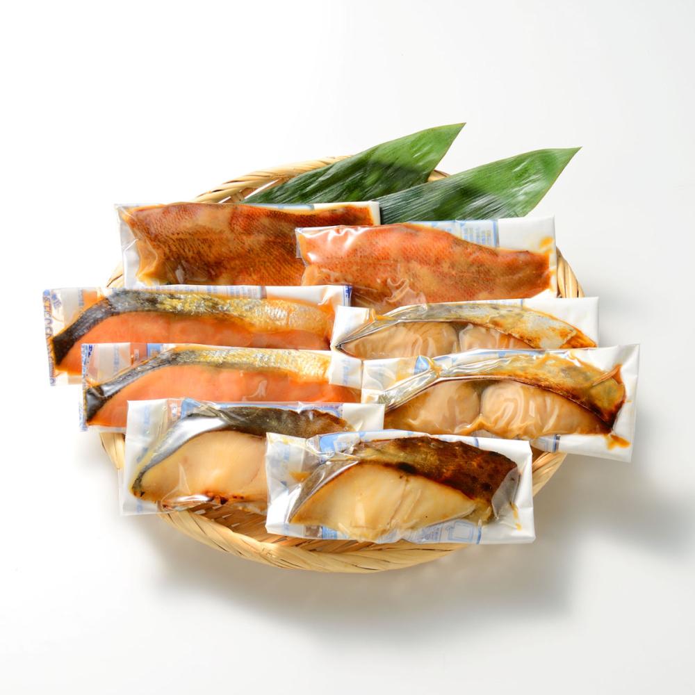 セット内容:銀鱈味噌漬焼50g、赤魚味噌漬焼60g、銀鮭味噌漬焼60g、さわら味噌漬焼50g、それぞれ各2