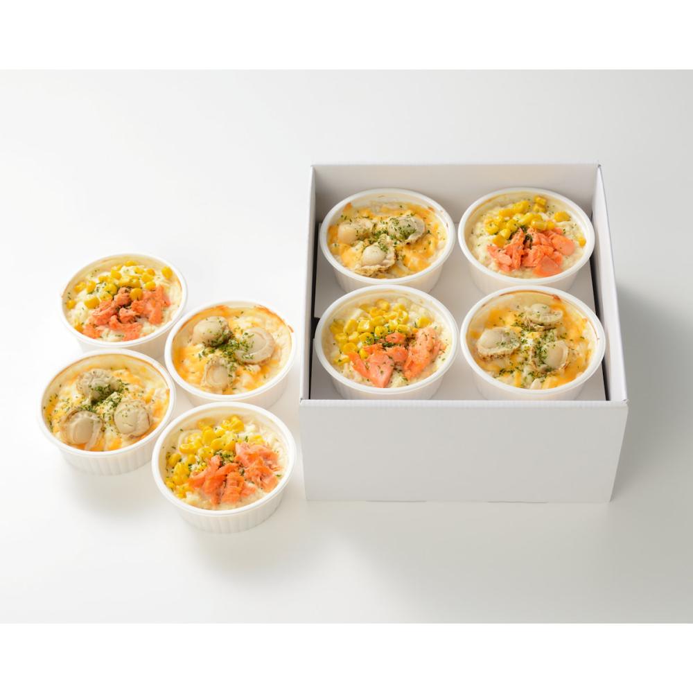 セット内容:帆立のグラタン120g、鮭とコーンのグラタン120g、それぞれ各4