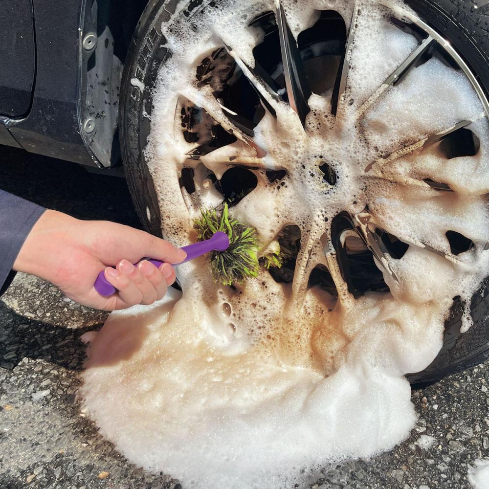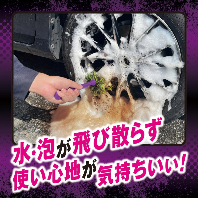 新たに採用したインターレース加工の毛でたっぷりの泡洗浄ができ、さらにはホイールへのダメージを軽減して優しく洗うことができます。また、柔らかい毛質なため洗浄中の水はねが減り、ボディー面や衣類への飛散を防止します。