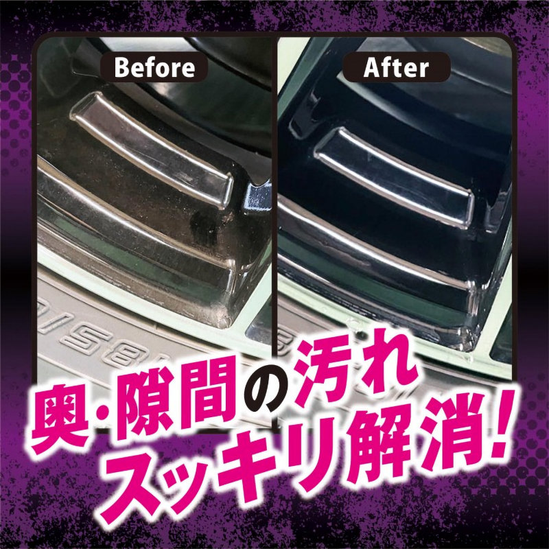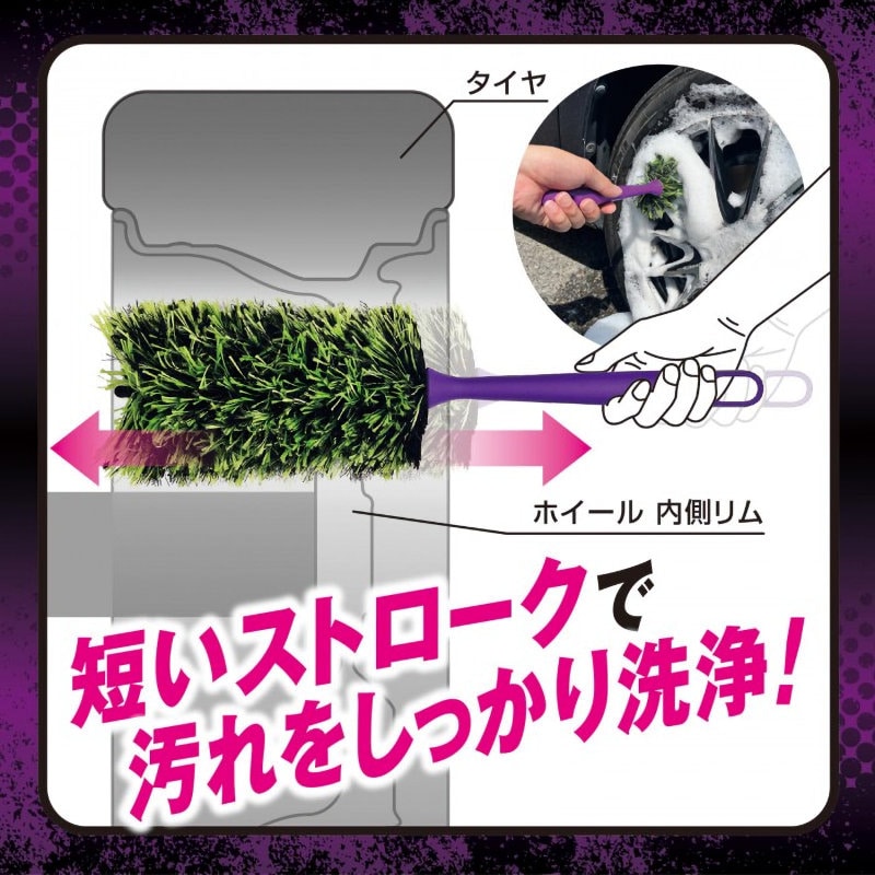 3種類の毛でホイールの奥に付着した細かい砂や泥汚れ等をしっかり掻き取ります。
