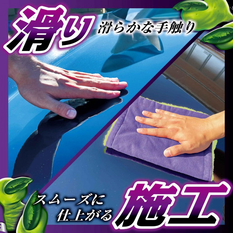 それにより拭き上げ時にはクロスの引っかかりが少なく、ムラなく均一にコーティングできるのでキレイに仕上がります。さらに、フルーティームスクの上品な香りで気持ち良く施工できます。 愛車をドレスアップし、あなたを魅惑する輝きに仕上がります。