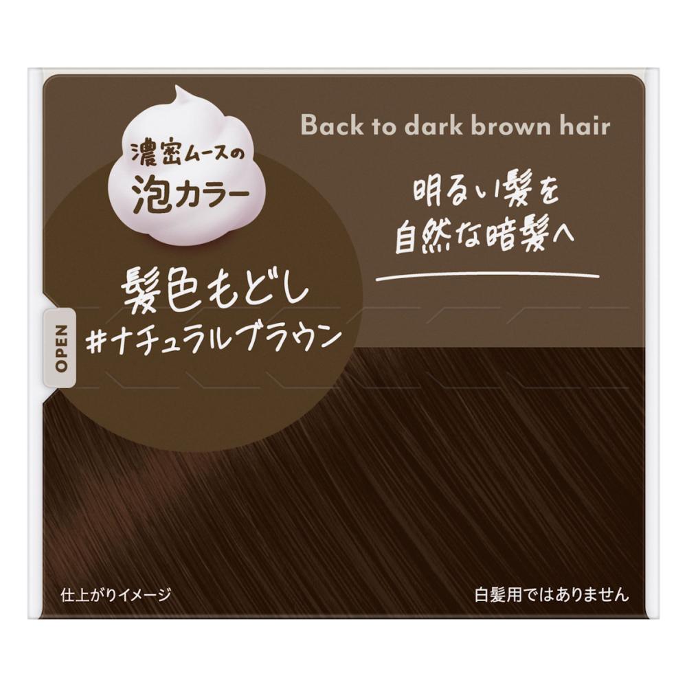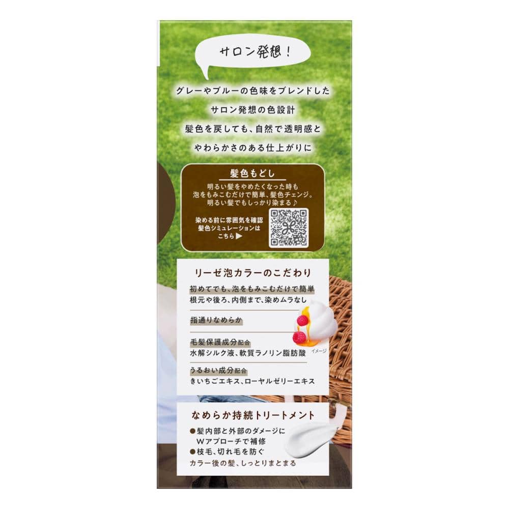 グレーやブルーの色味をブレンドしたサロン発想の色設計。 髪色を戻しても、自然で透明感とやわらかさのある仕上がりに。 (医薬部外品) ●初めてでも、泡でもみこむだけで簡単 ●指通りなめらか ●毛髪保護成分配合(水解シルク液、軟質ラノリン脂肪酸) ●うるおい保護成分配合(きいちごエキス、ローヤルゼリーエキス) ●なめらか持続トリートメント付き