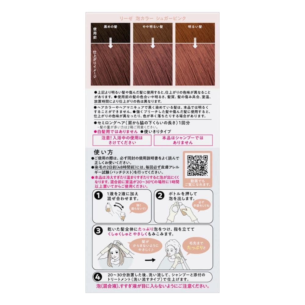 商品の利用(調理)方法:●ご使用の際は、必ず同封の使用説明書をよく読んで正しくお使いください。 ●染毛の2日前(48時間前)には、毎回必ず皮膚アレルギー試験(パッチテスト) を行ってください。 ●本品は冷えすぎたり温まりすぎたりすると泡が出にくくなります。混合前に室温が20~30℃の場所に1時間以上置いてからご使用ください。 動画でもご覧になれます。 1.1液を2液に加え混ぜ合わせます。 2.ボトルを押して泡を出します。 3.乾いた髪全体にたっぷり泡をつけ、指を立ててくしゅくしゅとやさしくもみこみます。 4.20~30分放置した後、洗い流して、シャンプーと添付のトリートメント(洗い流すタイプ)で仕上げます。 泡(混合液)、すすぎ液が目に入らないようにご注意ください。