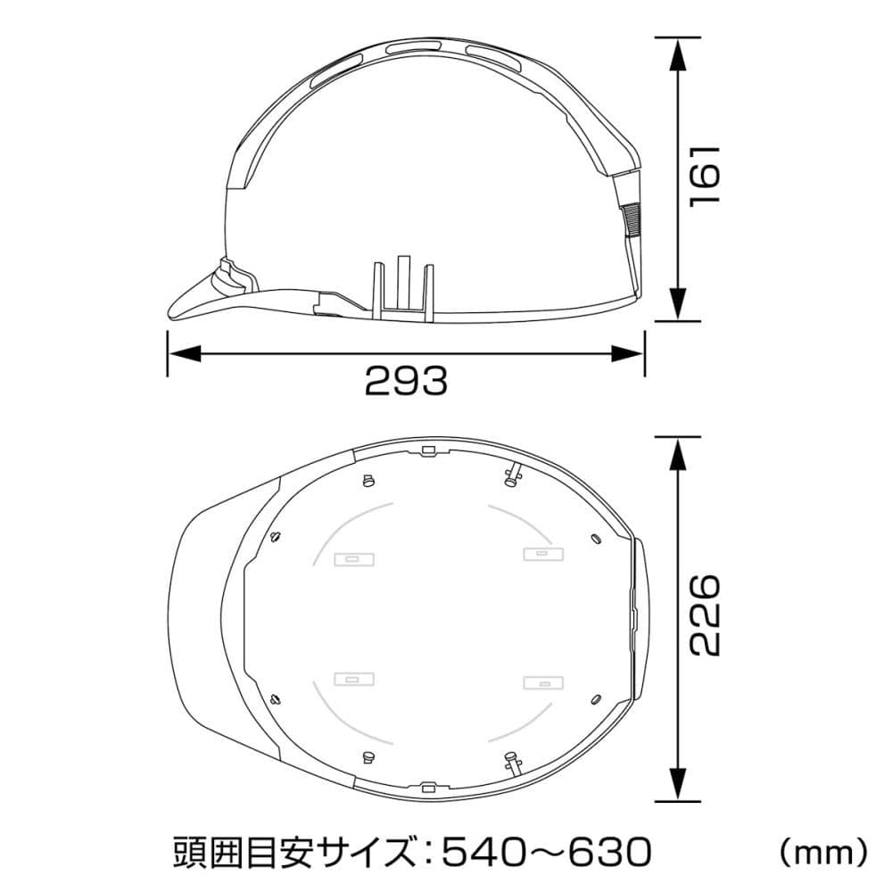 ●頭囲の目安サイズ:54~63cm ●製品重量:560g ●本製品は付属のトップカバーを取付けた状態で「保護帽の規格」に適合しています。取外した状態で使用しないでください ●型式検定合格標章はヘルメット内部にシールで貼付されています ●材質 本体:ABS トップカバー:TPU ヒサシ:PC ●付属品 フロントカバー(HAFEB)、リアカバー(HAR)、汗取りクロス(HAAC)、あご耳紐セット(HASP)