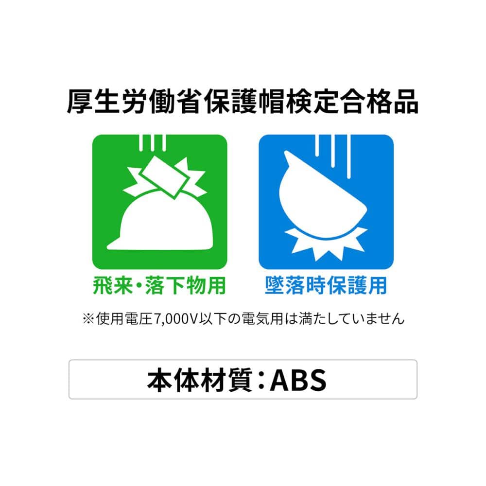 ●セフメット帽体、マット塗装 ●本体材質:ABS ●厚生労働省保護帽検定合格品。飛来・落下物用 / 墜落時保護用 ※使用電圧7,000V以下の電気用は満たしていません ●前後左右4カ所にセフ取付溝 ※通常のセフフックの取付けはできません ●ヘッドバンドにセフフック付